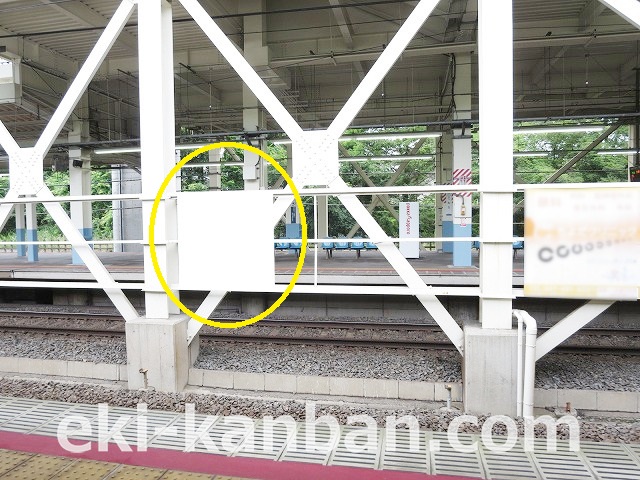 北総小室駅の上りホーム(新鎌ヶ谷・京成高砂・都営浅草線・京急線方面)線路前に設置されている看板です。上りホームで電車を待つ際に見えます。