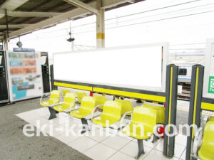 JR総武線幕張本郷駅のホームのベンチの背もたれ部分に設置されている両面タイプの看板です。ホームで電車を待つ際に見えます。