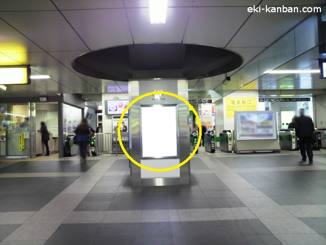 広いコンコースから電気街口へ向かう人に対して視認性の高い場所です。
