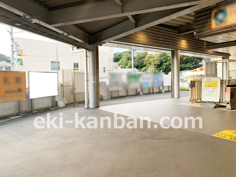 浦賀駅の改札を出た外通路にある建植タイプの広告看板です。