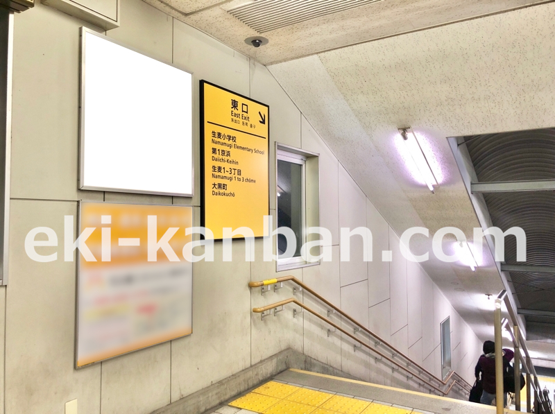 京急 生麦駅 の広告|改札外コンコース 東口出口階段付近にある広告看板です