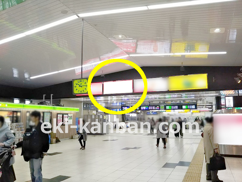中央口改札へ向かう際の上部にあります。メイン改札に向かう際に見てもらえる広告は近隣の商業施設への誘導や認知に適しています。