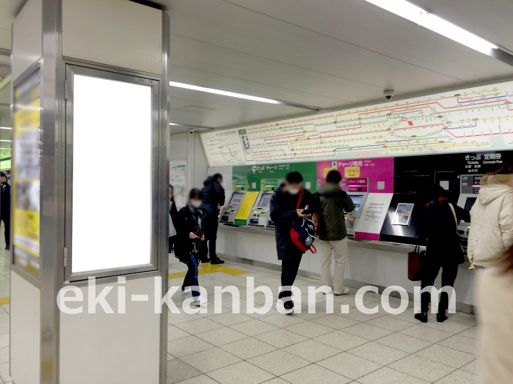 北改札を出た通路に設置された電飾タイプの広告看板です。柱看板ですので、往来される方々への誘導案内広告として有効です。