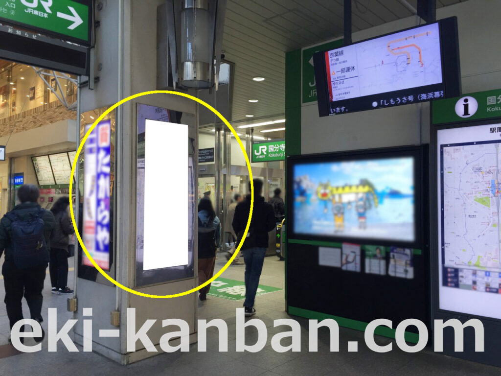 南北を結ぶ自由通路上の柱に設置されており、国分寺駅構内を行き来する方を対象とした広告です。
