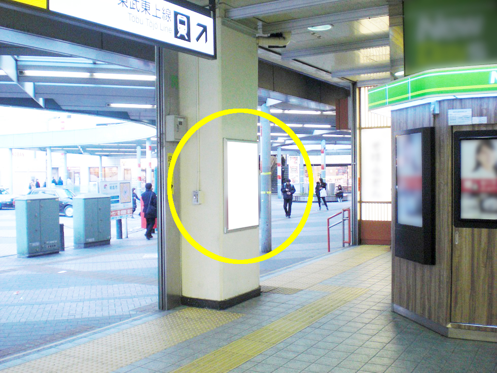 出口付近にある柱タイプの広告看板です。東武東上線への乗り換えする際に利用される出口でもあります。
