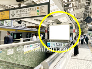 JR 市ヶ谷駅 の広告|中央線ホーム 地下鉄乗り換え専用階段の正面看板です。