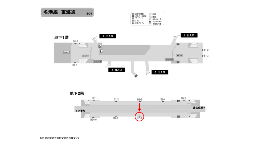 名古屋市営地下鉄 東海通駅のホーム前にある広告看板です。