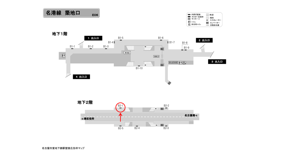 名古屋市営地下鉄 築地口駅のホーム前にある広告看板です。