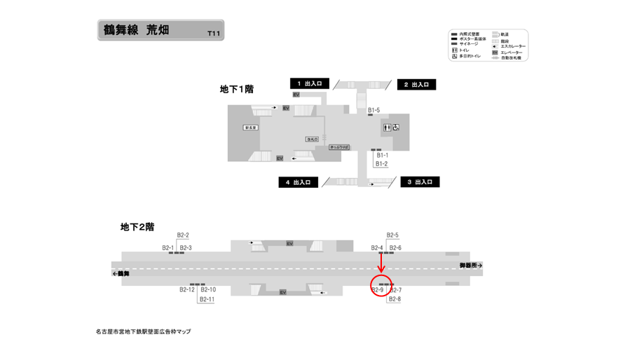 名古屋市営地下鉄 荒畑駅のホーム前にある広告看板です。