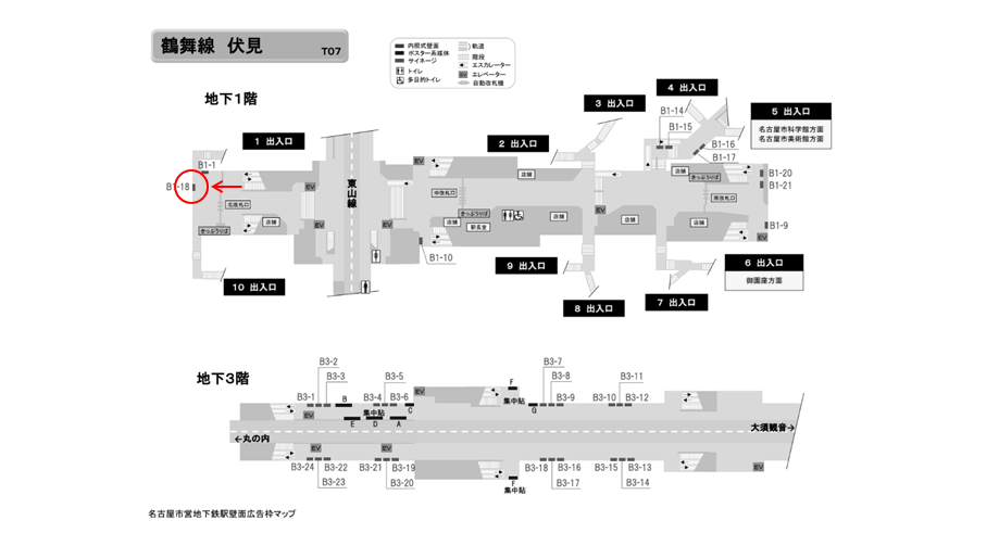 名古屋市営地下鉄 伏見駅のコンコース通路にある広告看板です。