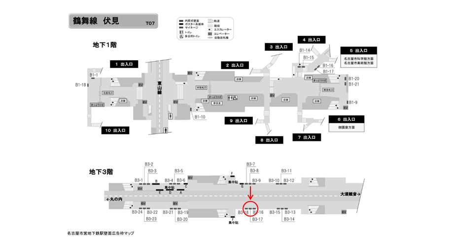 名古屋市営地下鉄 伏見駅のホーム前にある広告看板です。