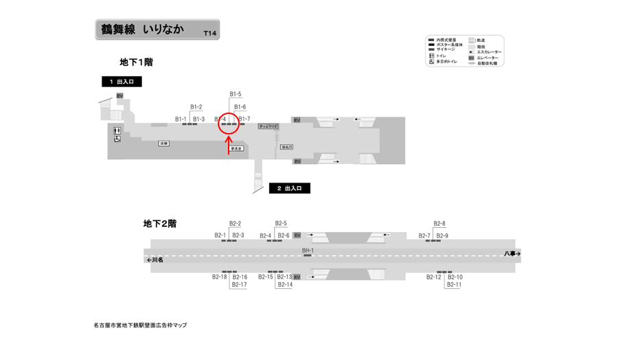 名古屋市営地下鉄 いりなか駅のコンコース通路にある広告看板です。