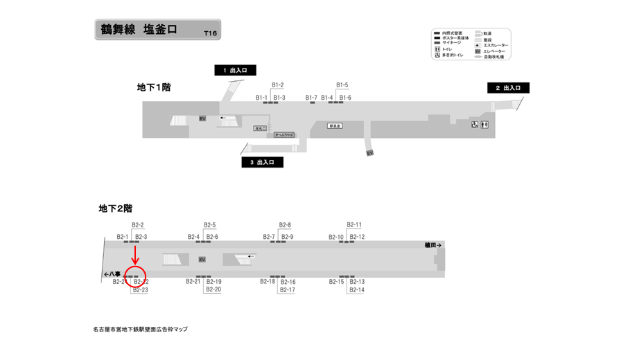 名古屋市営地下鉄 塩釜口駅のホーム前にある広告看板です。