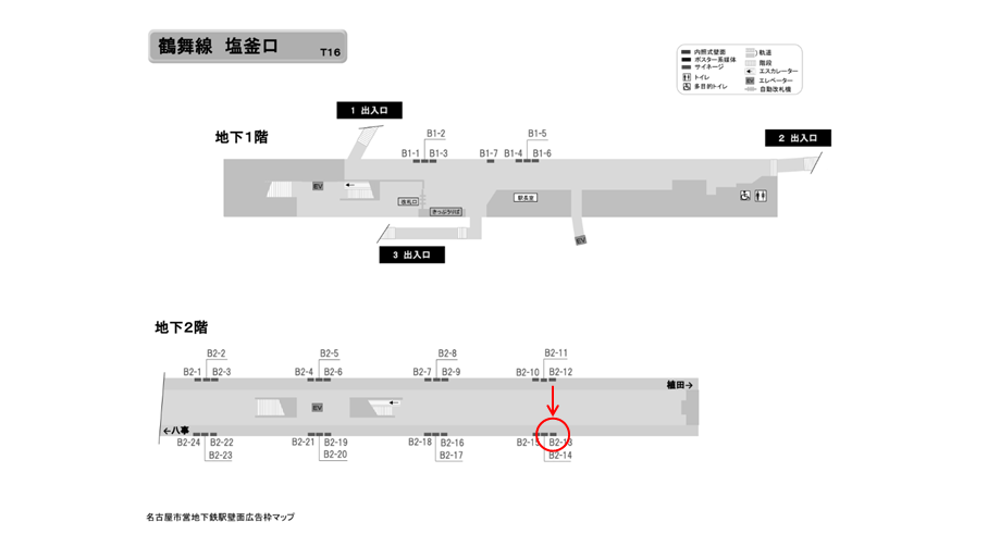 名古屋市営地下鉄 塩釜口駅のホーム前にある広告看板です。