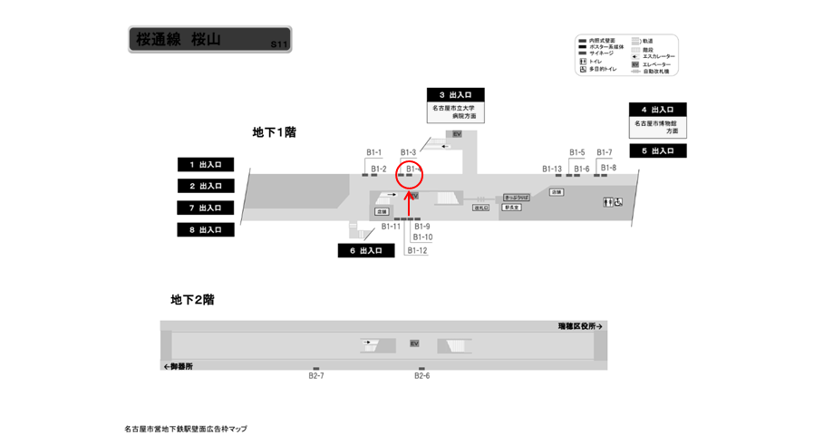 名古屋市営地下鉄 桜山駅のコンコース通路にある広告看板です。