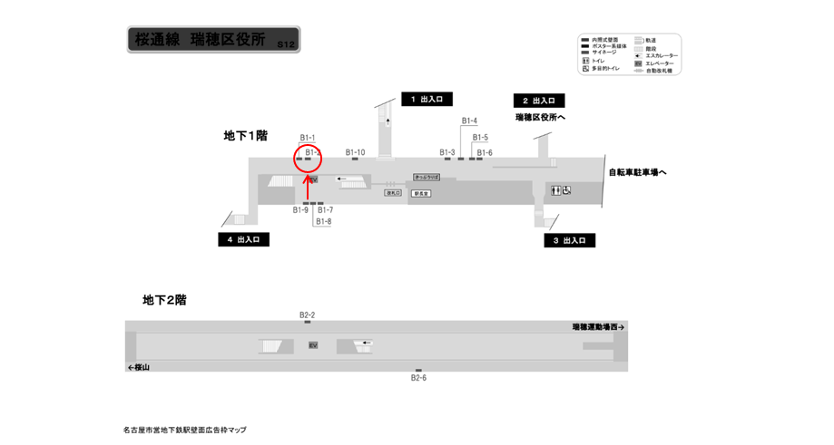 名古屋市営地下鉄 瑞穂区役所駅のコンコース通路にある広告看板です。