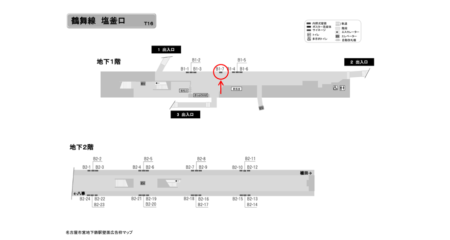 名古屋市営地下鉄 塩釜口駅のコンコース通路にある広告看板です。