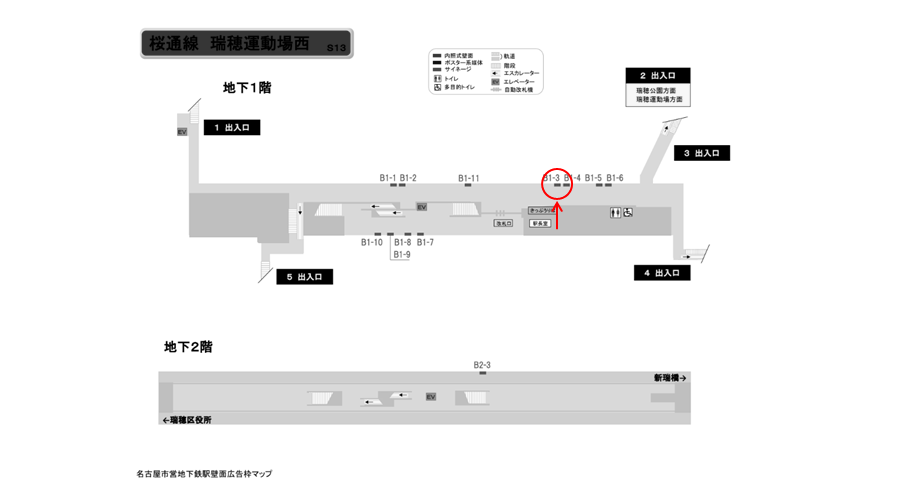 名古屋市営地下鉄 瑞穂運動場西駅のコンコース通路にある広告看板です。