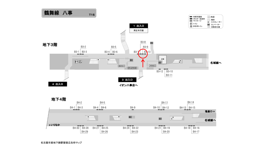 名古屋市営地下鉄 八事駅のコンコース通路にある広告看板です。