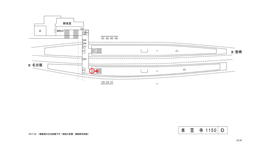 名鉄 本笠寺駅のホーム前にある広告看板です。