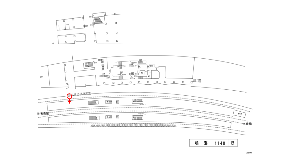 名鉄 鳴海駅のホーム前にある広告看板です。