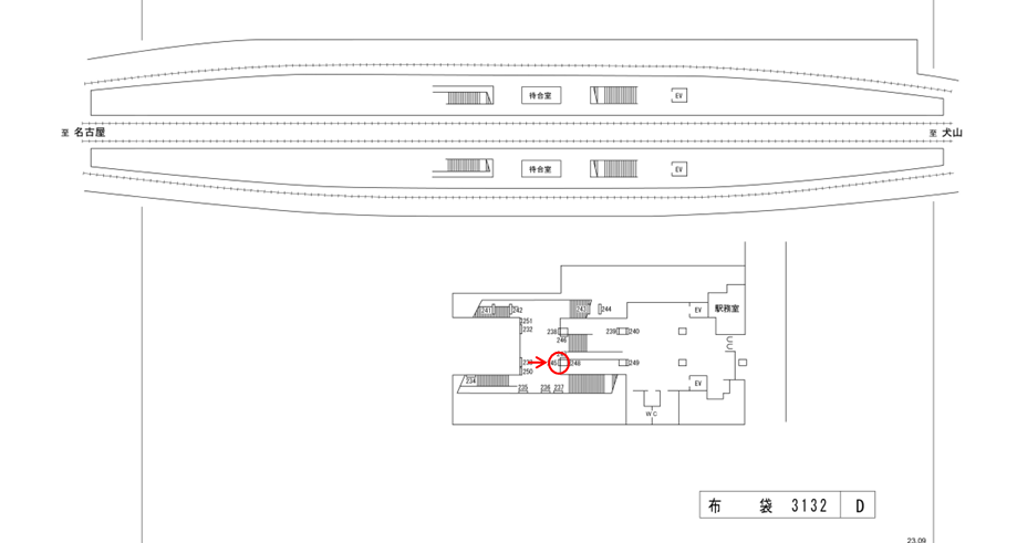 名鉄 布袋駅のコンコース通路にある広告看板です。
