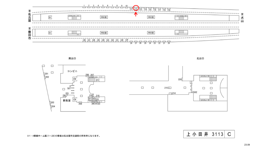 名鉄 上小田井駅のホーム前にある広告看板です。
