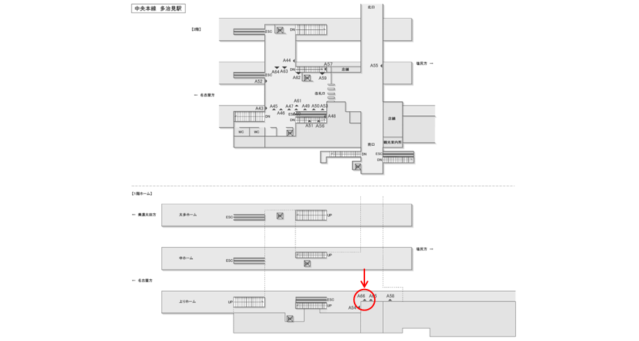 JR東海/多治見駅/№A-66№66駅看板、位置図