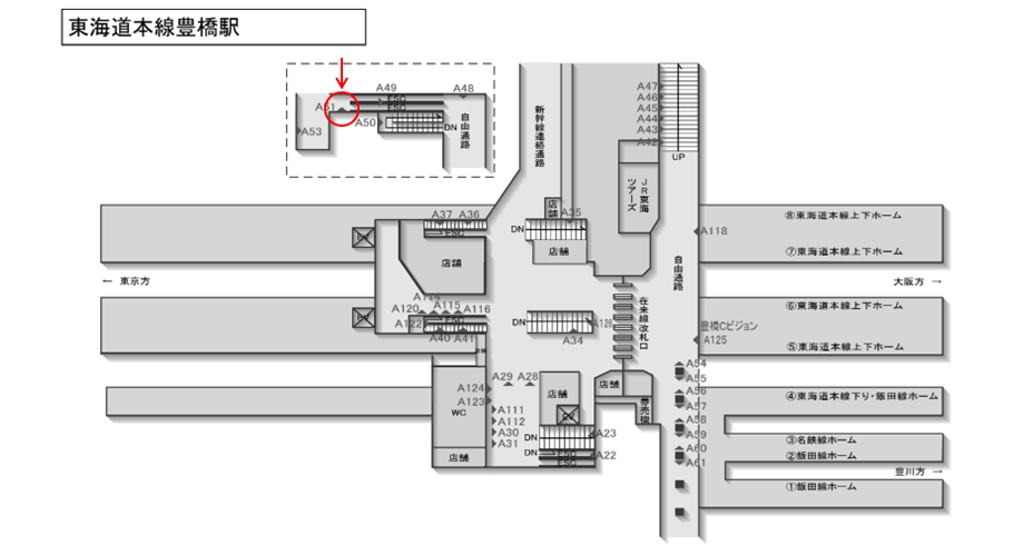 豊橋駅は、在来線と新幹線のホームが地上に配置されている地上駅です。在来線・名鉄線のホームは5面8線、新幹線のホームは2面3線を有しています。駅舎は橋上駅舎となっており、東西自由通路で東口と西口が連絡しています。