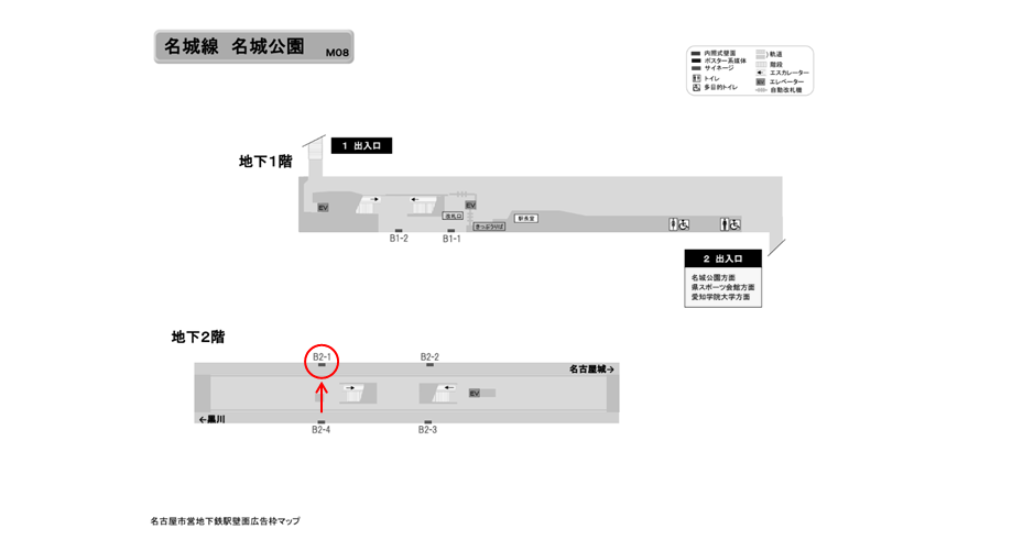 名古屋市営地下鉄 名城公園駅のホーム前にある広告看板です。