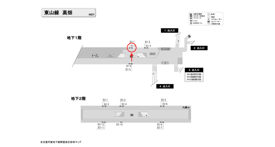 名古屋市営地下鉄 高畑駅のコンコース通路にある広告看板です。