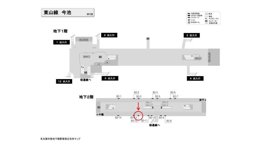 名古屋市営地下鉄 今池駅のホーム前にある広告看板です。
