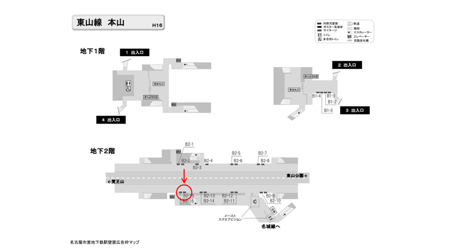 名古屋市営地下鉄 本山駅のホーム前にある広告看板です。