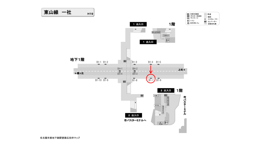 名古屋市営地下鉄 一社駅のホーム前にある広告看板です。