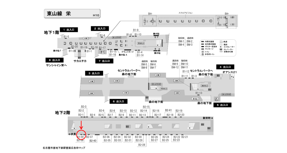 名古屋市営地下鉄 栄駅のホーム前にある広告看板です。