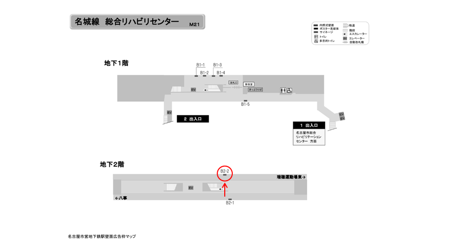 名古屋市営地下鉄 総合リハビリセンター駅のホーム前にある広告看板です。