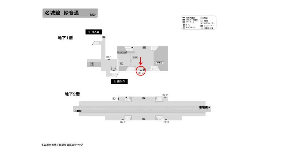 名古屋市営地下鉄 妙音通駅のコンコース通路にある広告看板です。