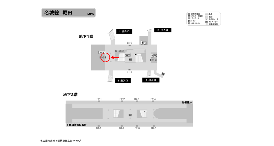 名古屋市営地下鉄 堀田駅のコンコース通路にある広告看板です。