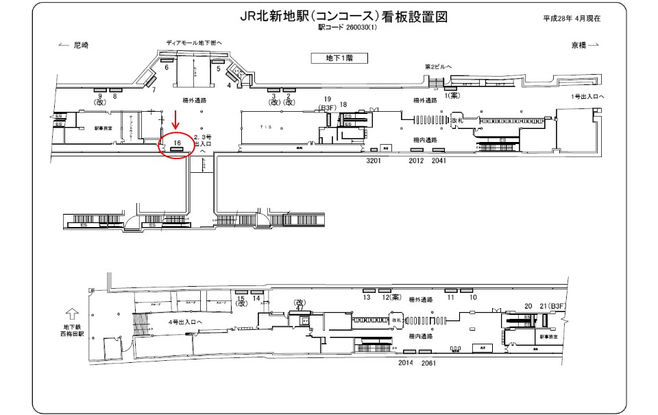 駅看板「JR 北新地駅 №016」