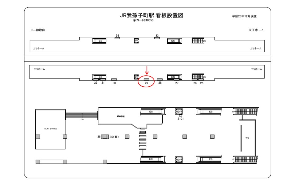 また上りホーム(天王寺、大阪方面)にて電車をお待ちの方々にも訴求することができます。