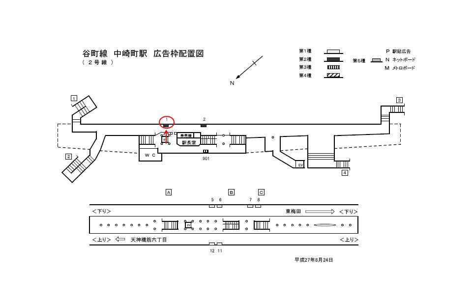 谷町線中崎町駅の改札外に設置された電飾タイプの看板になります。