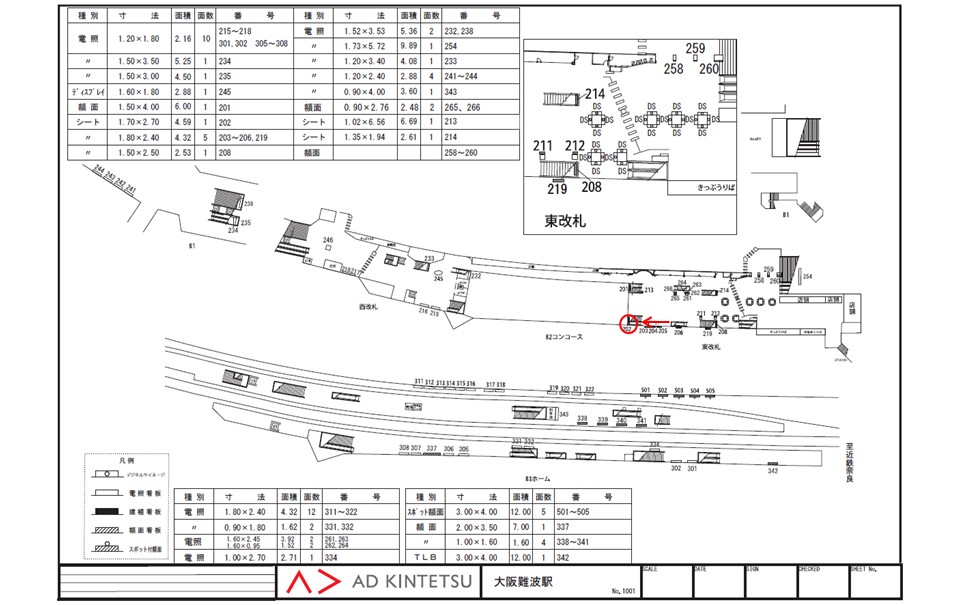 ○近鉄なんばアーバンビジョン 東改札内外コンコース |