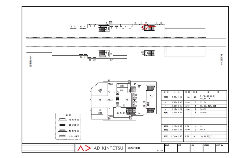 河内小阪駅ホーム階段見附に掲出される電照タイプの看板となります。