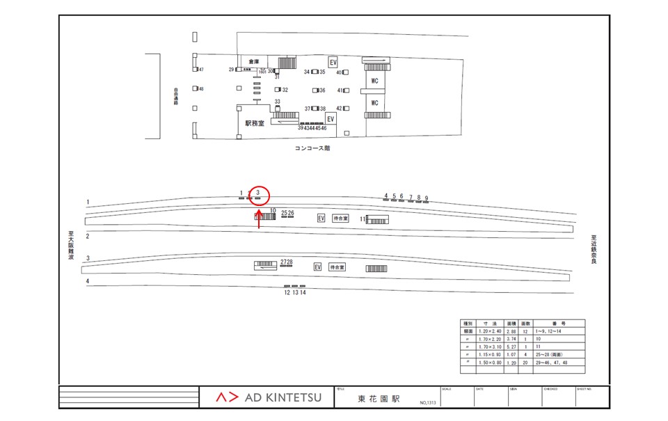 訴求対象は主に1番ホーム(近鉄奈良方面)にて電車をお待ちの方々となります。