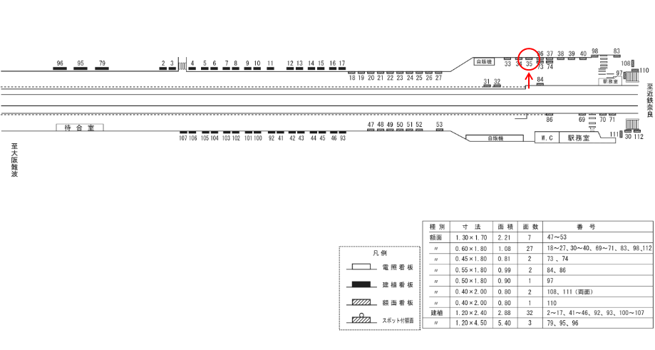 新大宮駅ホームに掲出された非電照タイプの看板です。