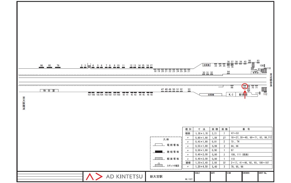 大阪難波方面ホームの改札付近に掲出されることで人目につきやすい媒体となります。