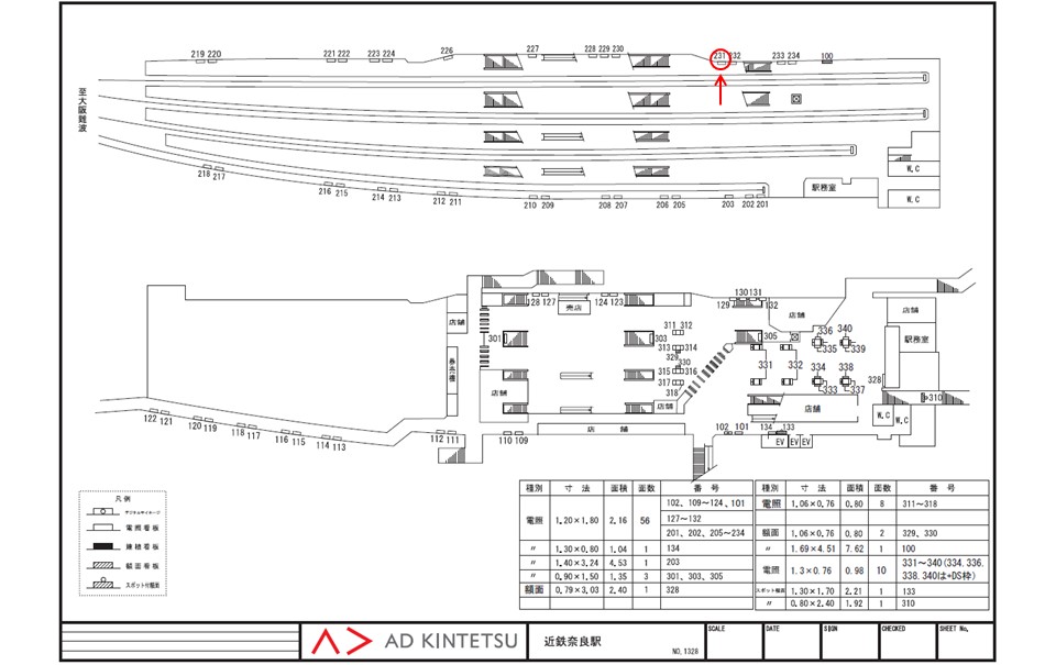 駅看板「近鉄 近鉄奈良駅 №231」は近鉄 近鉄奈良駅の近鉄奈良線 大阪難波・神戸三宮・京都・国際会館方面のホーム上にある電飾看板です。