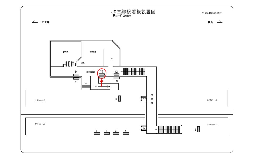 三郷駅改札内通路に掲出される非電照タイプの看板となります。