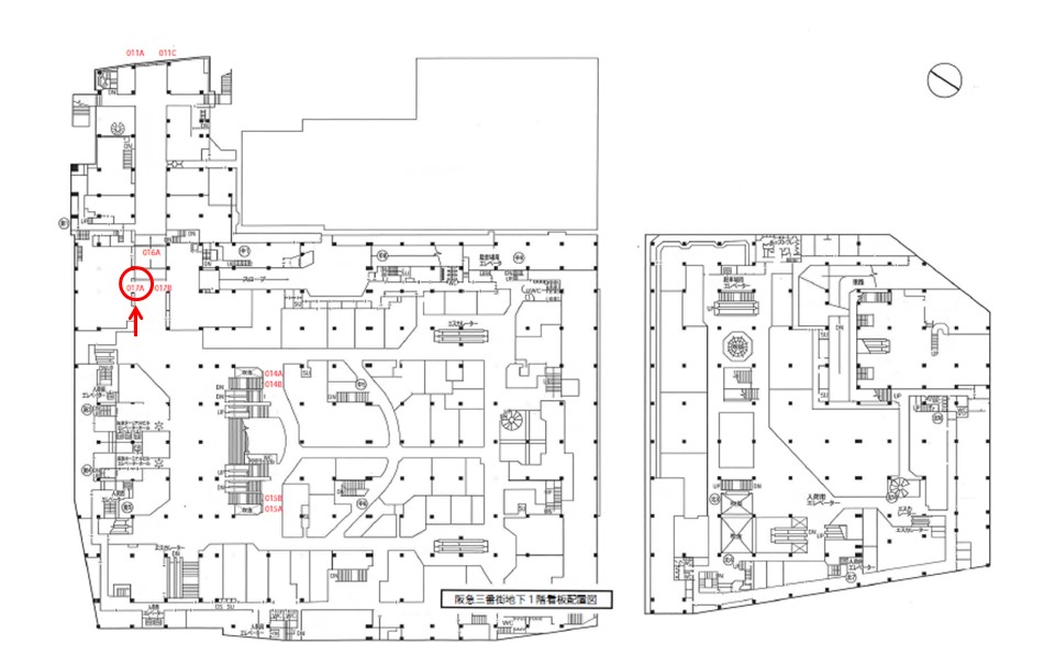 阪急 大阪梅田駅、三番街地下1階地下鉄連絡口に設置された駅広告(駅看板)の設備紹介です。