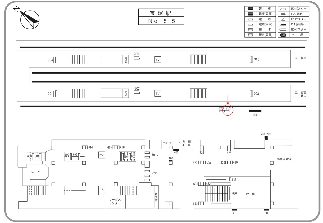 阪急電鉄の中でも主要駅である宝塚駅に看板を掲出することで、企業様におけるイメージアップにも繋がります。